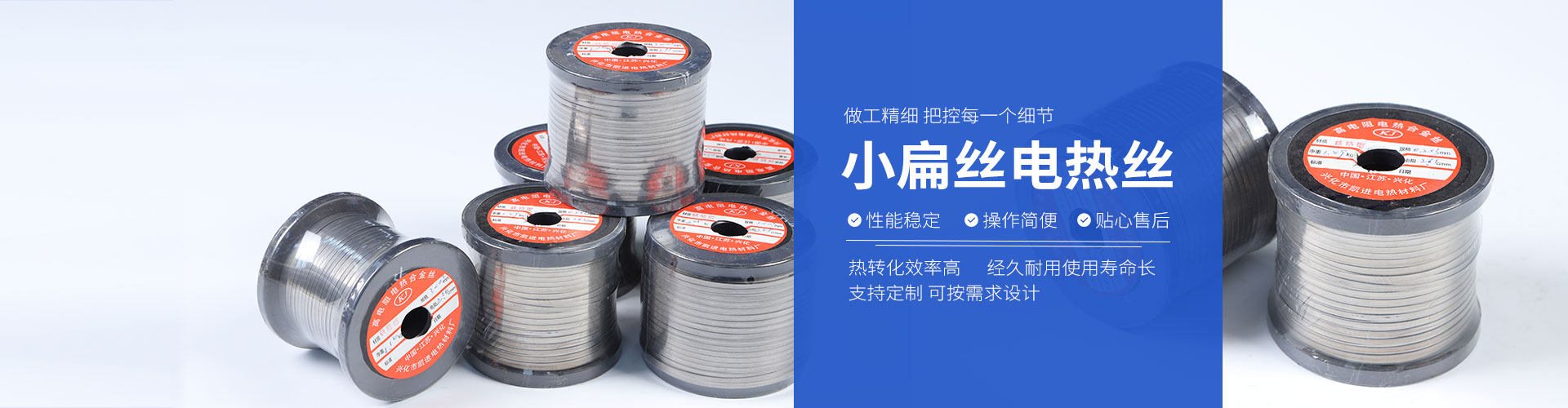 公司生產(chǎn)各種規(guī)格型號的高電阻電熱合金絲、帶。設(shè)計(jì)制造各種規(guī)格型號的電阻絲、電爐條、電阻帶、石英條。承接各種非標(biāo)。產(chǎn)品銷往各地,廣泛應(yīng)用于冶金化工、機(jī)械、玻璃、陶瓷及家用電器等領(lǐng)域。地處魚米之鄉(xiāng)的里下河地區(qū),東靠204國道,新長鐵路,西傍229省道。寧靖鹽高速南近328國道。寧啟鐵路。352省道交通便捷。